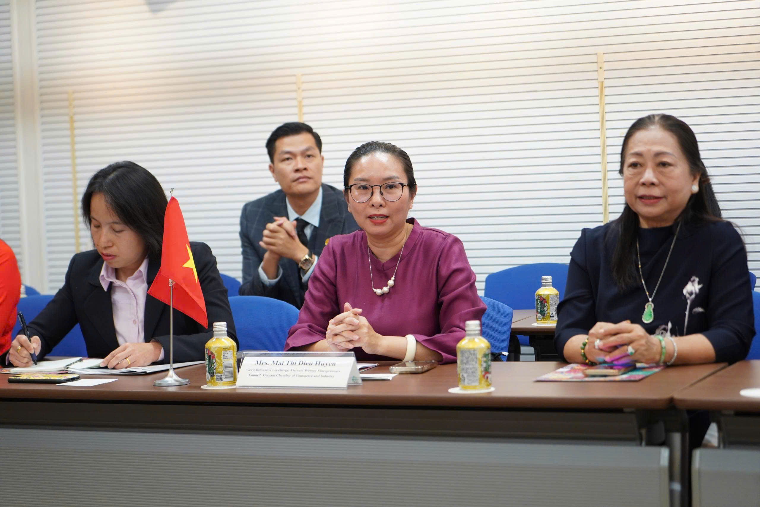 Tại buổi làm việc, hai bên đã thảo luận về các cơ hội hợp tác, kết nối doanh nghiệp nữ, thúc đẩy xuất khẩu sản phẩm Việt Nam sang thị trường Nhật Bản, cũng như trao đổi kinh nghiệm hỗ trợ doanh nhân nữ trong khu vực ASEAN.