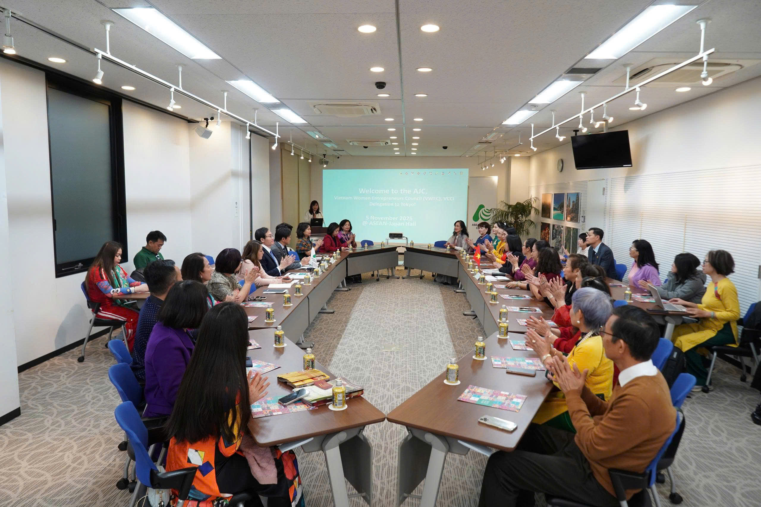 Trong khuôn khổ chương trình làm việc tại Nhật Bản, ngày 5/11/2025, đoàn công tác của Hội đồng Doanh nhân nữ Việt Nam, VCCI và các thành viên đoàn công tác “chuyến bay màu hồng HeForShe” của Vietnam Airlines đã có buổi gặp gỡ và trao đổi với đại diện ASEAN–Japan Centre (AJC) tại Tokyo.