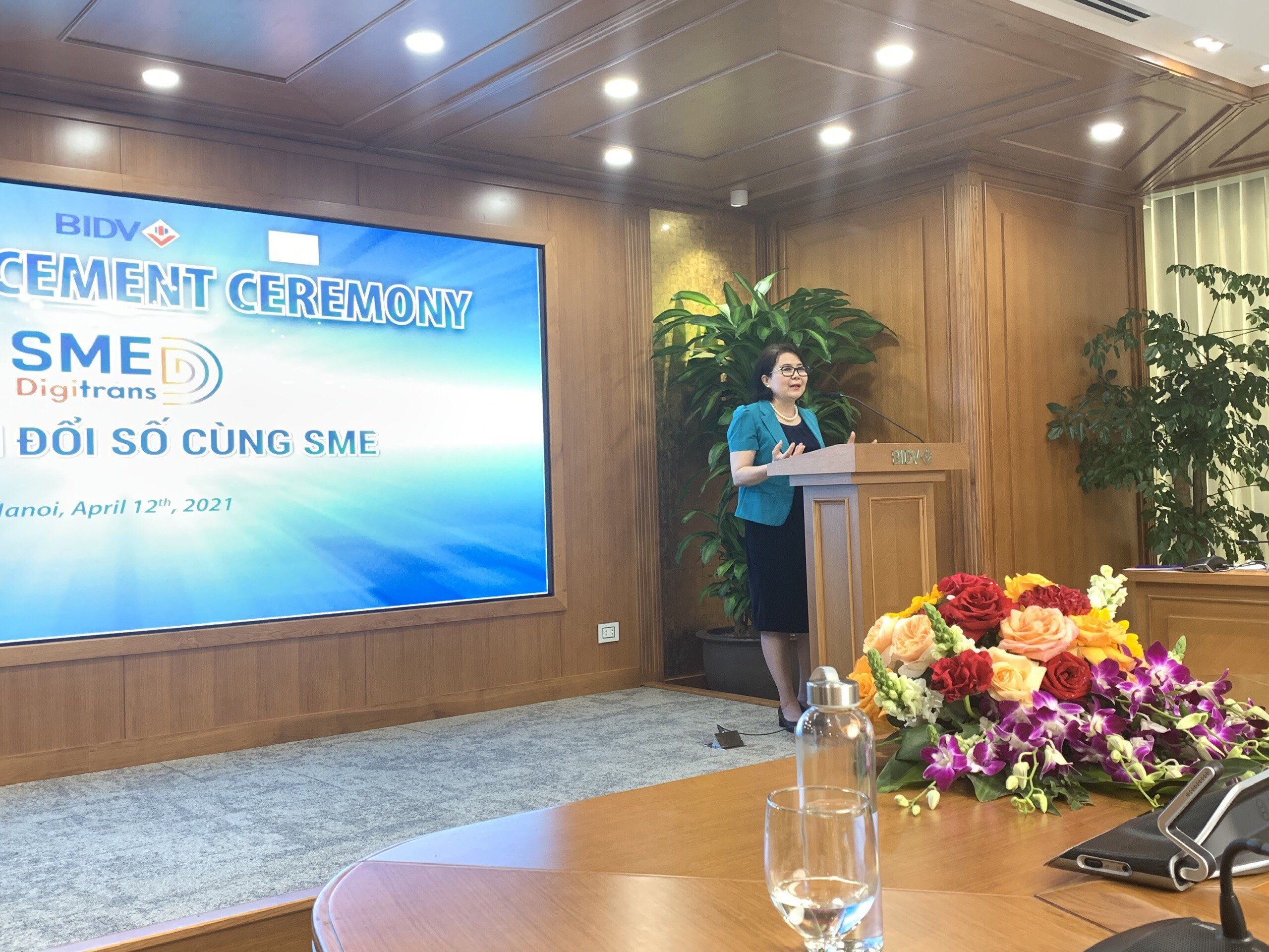 Ngày 12/4/2021 Chủ tịch Hội đồng Doanh nhân nữ Việt Nam đã tham dự và phát biểu tại Lễ Công bố Chương trình “Chuyển đổi số cùng SME – SME Digitrans” do Ngân hàng TMCP Đầu tư và Phát triển Việt Nam – BIDV tổ chức. Tại sự kiện hai bên đã công bố và trao đổi Thỏa thuận hợp tác trong việc cung cấp các giải pháp tài chính và phi tài chính hỗ trợ các DNNVV do phụ nữ làm chủ.