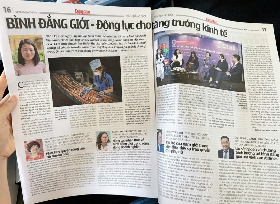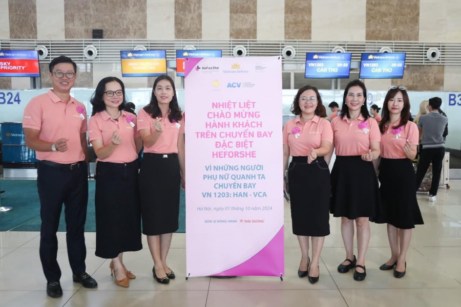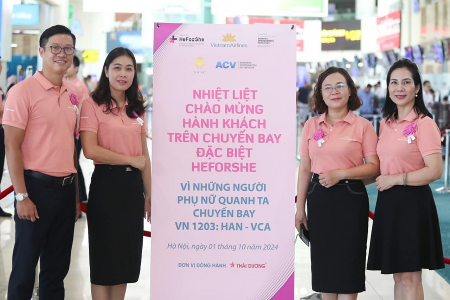 Nhân kỷ niệm Ngày Phụ nữ Việt Nam 20/10, nhằm hướng tới Tháng Bình đẳng giới, Tổng Công ty Hàng Không VietnamAirlines phối hợp với UN Women và Hội đồng Doanh nhân nữ Việt Nam (VWEC) tổ chức ?????̂́? ??? ???????? ??̀? ???̀? ?/??/???? – đây là một trong những hoạt động thuộc chuỗi hoạt động HeForShe.