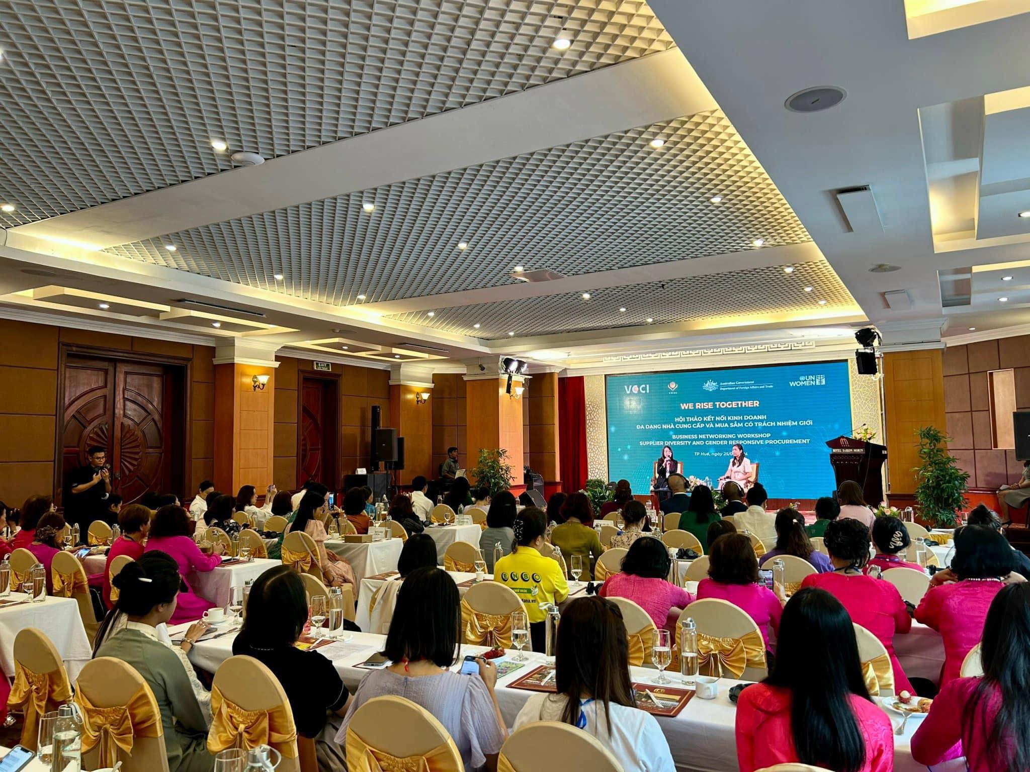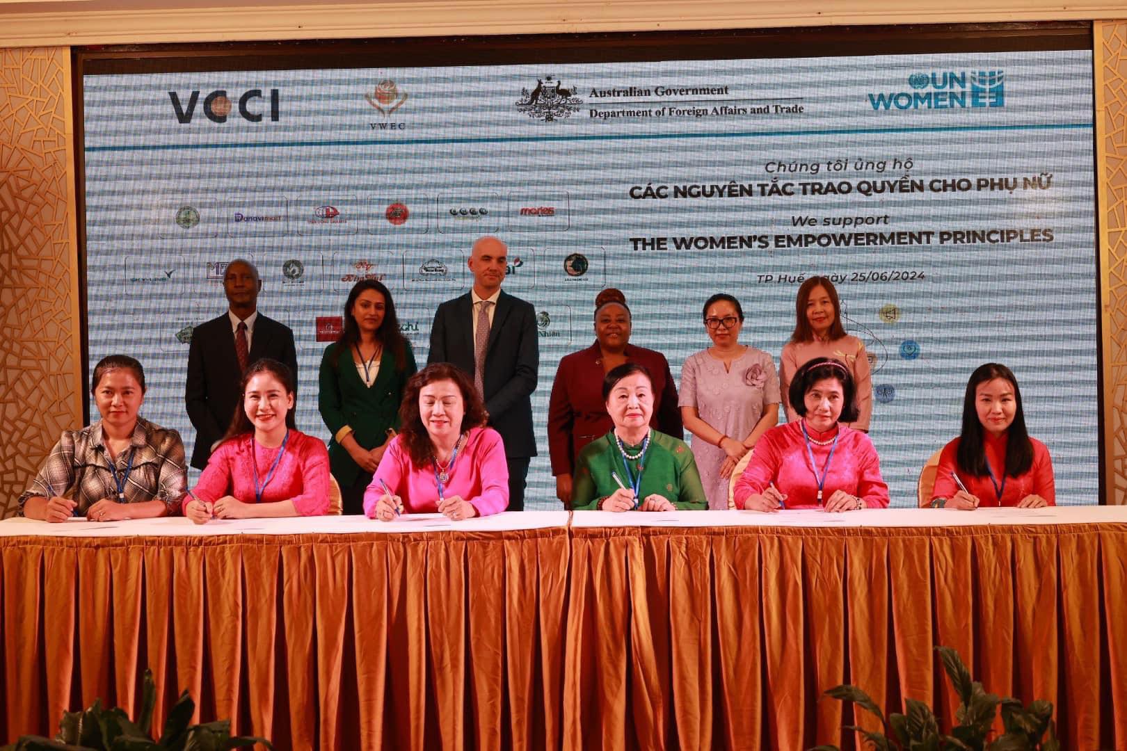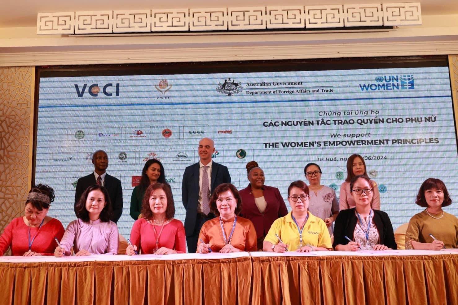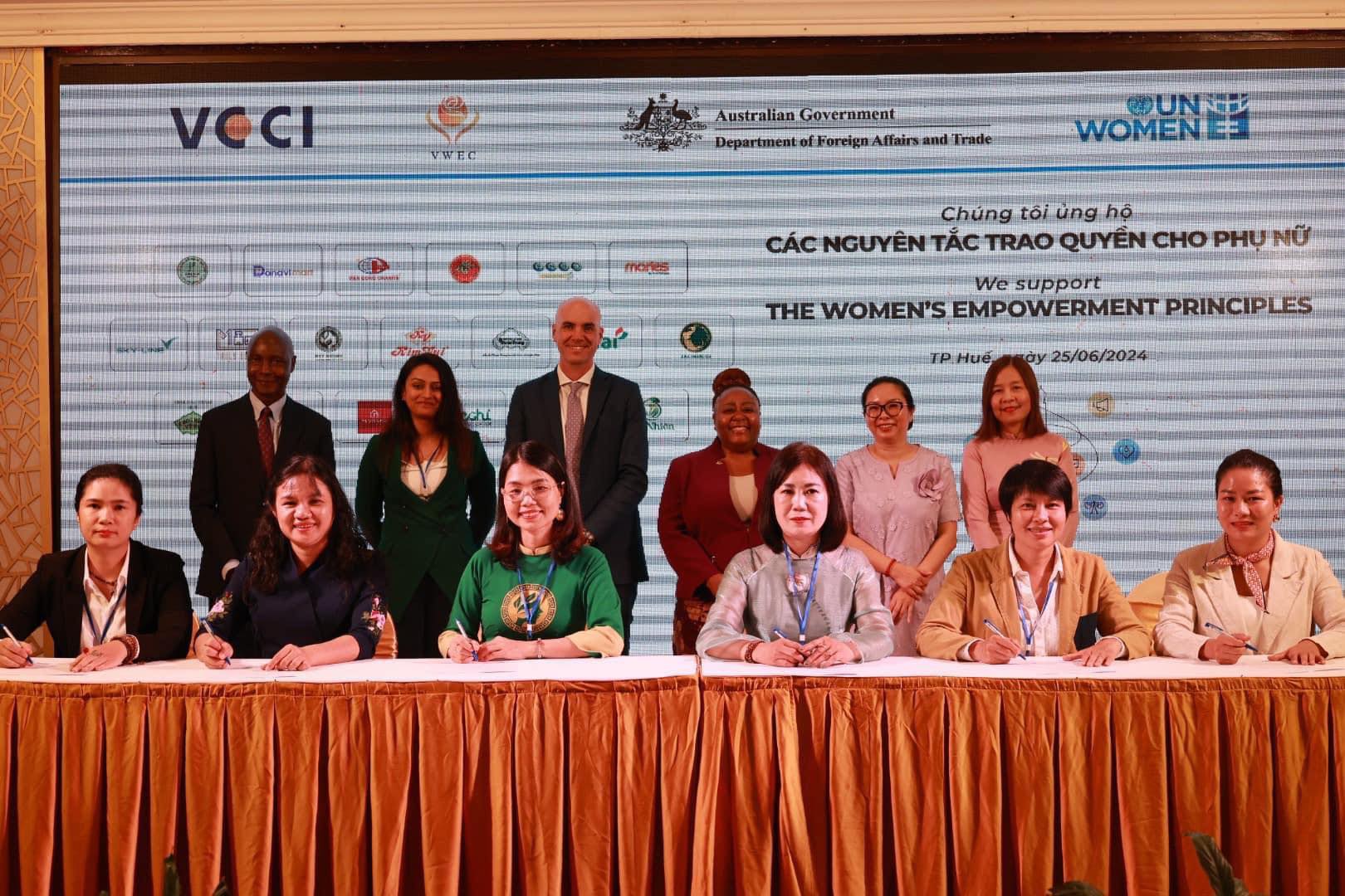 19 doanh nghiệp tại Thừa Thiên Huế và Đà Nẵng đã tham gia ký Ủng hộ Các Nguyên tắc Trao quyền cho Phụ nữ (Women’s Empowerment Principles – WEPs) tại Hội thảo Kết nối kinh doanh “Đa dạng nhà cung cấp và Mua sắm có trách nhiệm giới” do Hội đồng Doanh nhân nữ Việt Nam, VCCI và UN Women tổ chức ngày 25/06/2024, nâng tổng số doanh nghiệp tham gia ký WEPs tại Việt Nam lên hơn 200 doanh nghiệp.