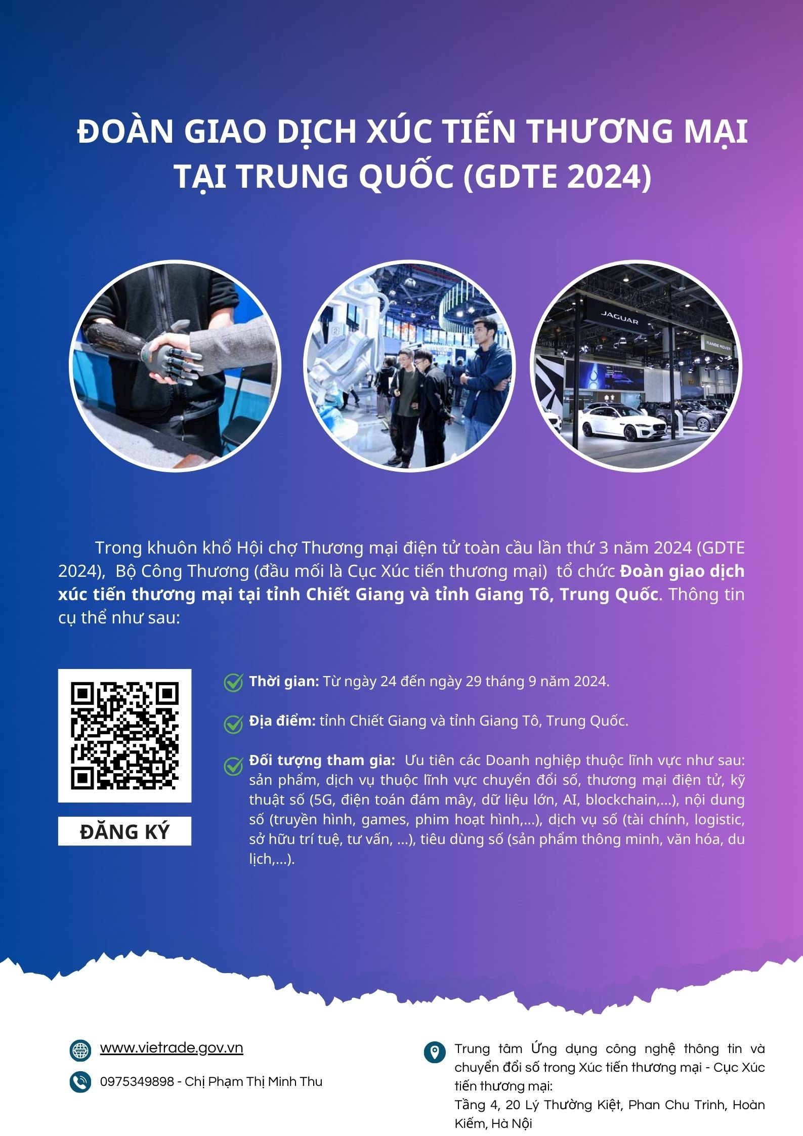 Các đơn vị quan tâm đề nghị gửi hồ sơ đăng ký tham gia Đoàn về địa chỉ: