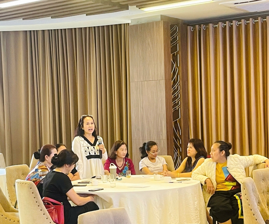 Bà Trần Hải Yến, Phó Trưởng phòng, Hội đồng Doanh nhân nữ Việt Nam chia sẻ tại khóa đào tạo