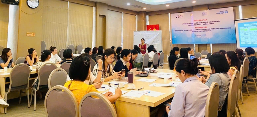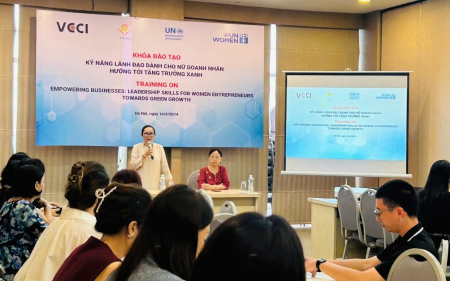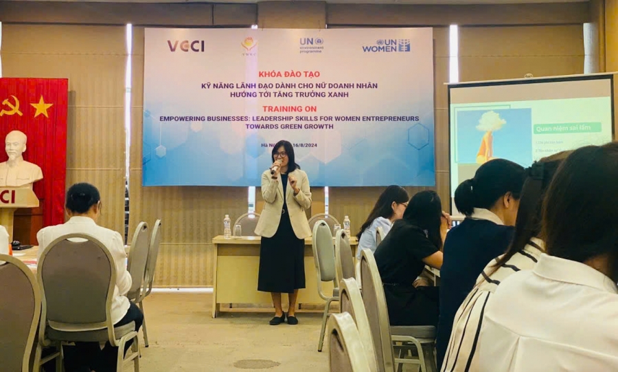 Khóa đào tạo “Kỹ năng lãnh đạo dành cho nữ doanh nhân hướng tới tăng trưởng xanh” vào ngày 16/8/2024 tại Hà Nội.