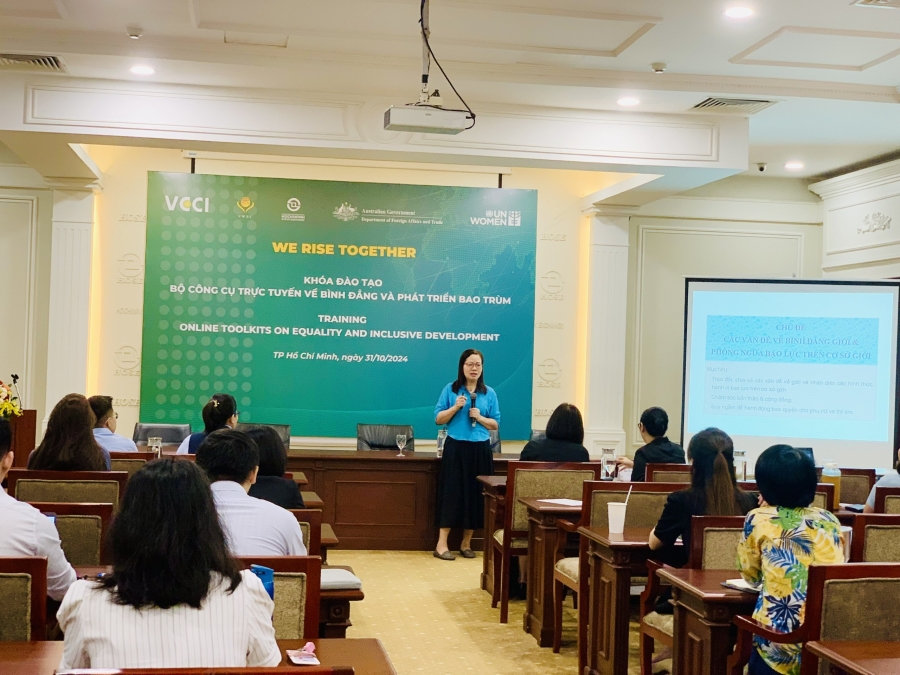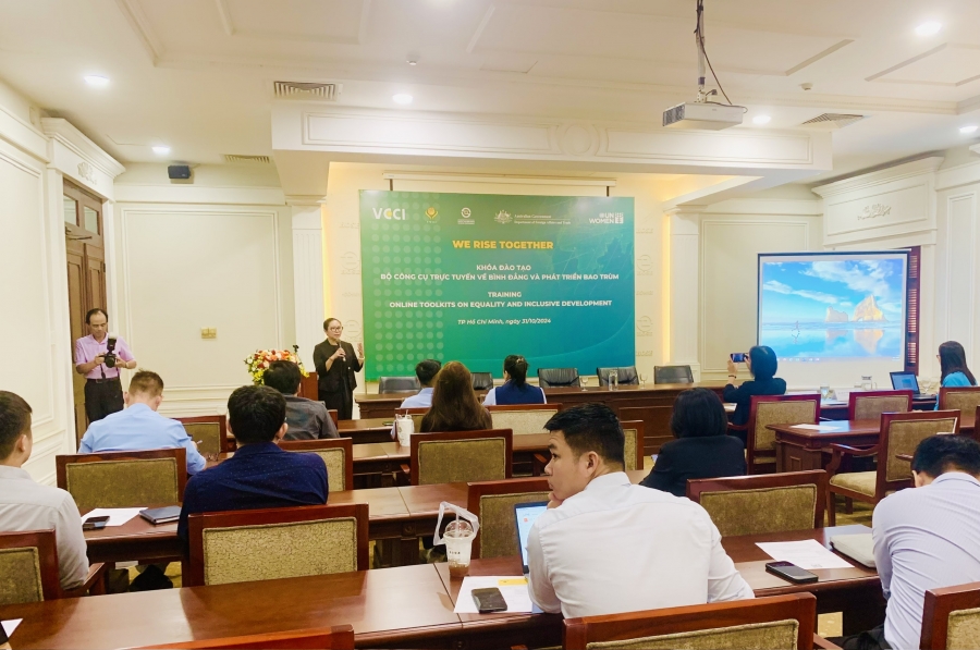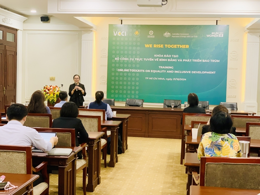 Ngày 31/10/2024 Hội đồng Doanh nhân nữ Việt Nam phối hợp Sở Giao dịch Chứng khoán TP. Hồ Chí Minh (HoSE) và Cơ quan Liên Hợp quốc về Bình đẳng giới và Trao quyền cho Phụ nữ (UN Women) tổ chức khóa đào tạo “Sử dụng các bộ Công cụ trực tuyến về Bình đẳng và Phát triển bao trùm” tại trụ sở của Sở Giao dịch Chứng khoán TP. HCM.