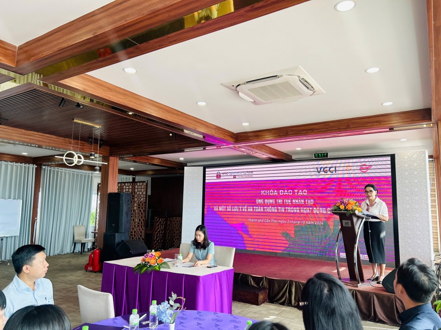 ?Trong ngày 02/10/2024, hơn 70 đại biểu là đại diện các doanh nghiệp do phụ nữ làm chủ, lãnh đạo trên địa bàn thành phố Cần Thơ đã cùng nhau nâng cao kiến thức về an toàn thông tin trên không gian số và thực hành ứng dụng Trí tuệ nhân tạo AI trong hoạt động của doanh nghiệp.