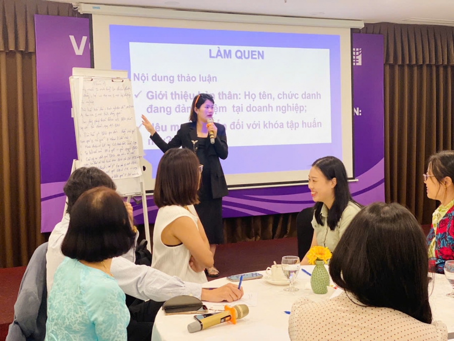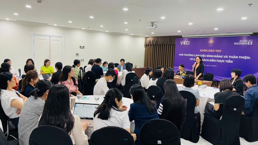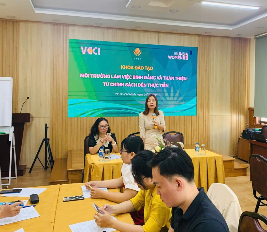 Chúng tôi vui mừng thông báo về sự thành công của 02 khóa đào tạo đầu tiên trong khuôn khổ Dự án trên. Khóa đào tạo với chủ đề “Môi trường làm việc bình đẳng và thân thiện: Từ chính sách đến thực tiễn” đã diễn ra vào ngày 01/10 tại TP.HCM và ngày 11/10/2024 tại Hà Nội, do Hội đồng Doanh nhân nữ Việt Nam phối hợp với UN Women tổ chức. Các sự kiện  đã thu hút hơn 100 đại biểu đến từ các doanh nghiệp lớn ở Hà Nội, Tp.HCM và các tỉnh lân cận của hai thành phố