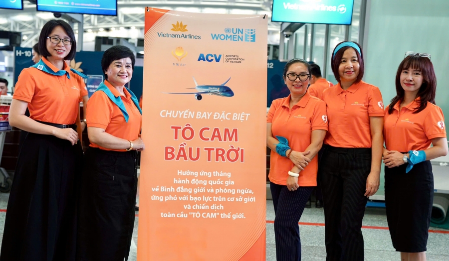 Chương trình do Vietnam Airlines phối hợp với UN Women, Hội đồng Doanh nhân nữ Việt Nam và các đối tác tổ chức nhằm hưởng ứng “Tháng hành động quốc gia vì Bình đẳng giới và Phòng chống bạo lực trên cơ sở giới năm 2024”.