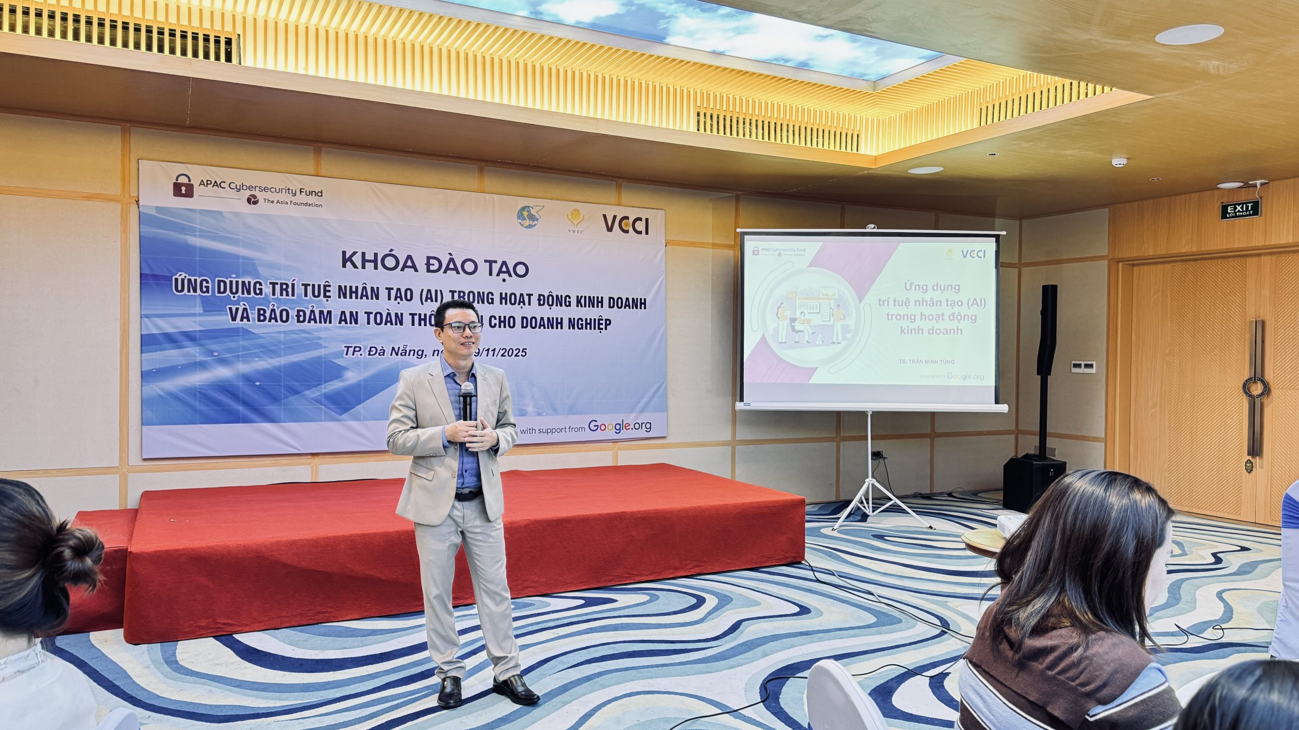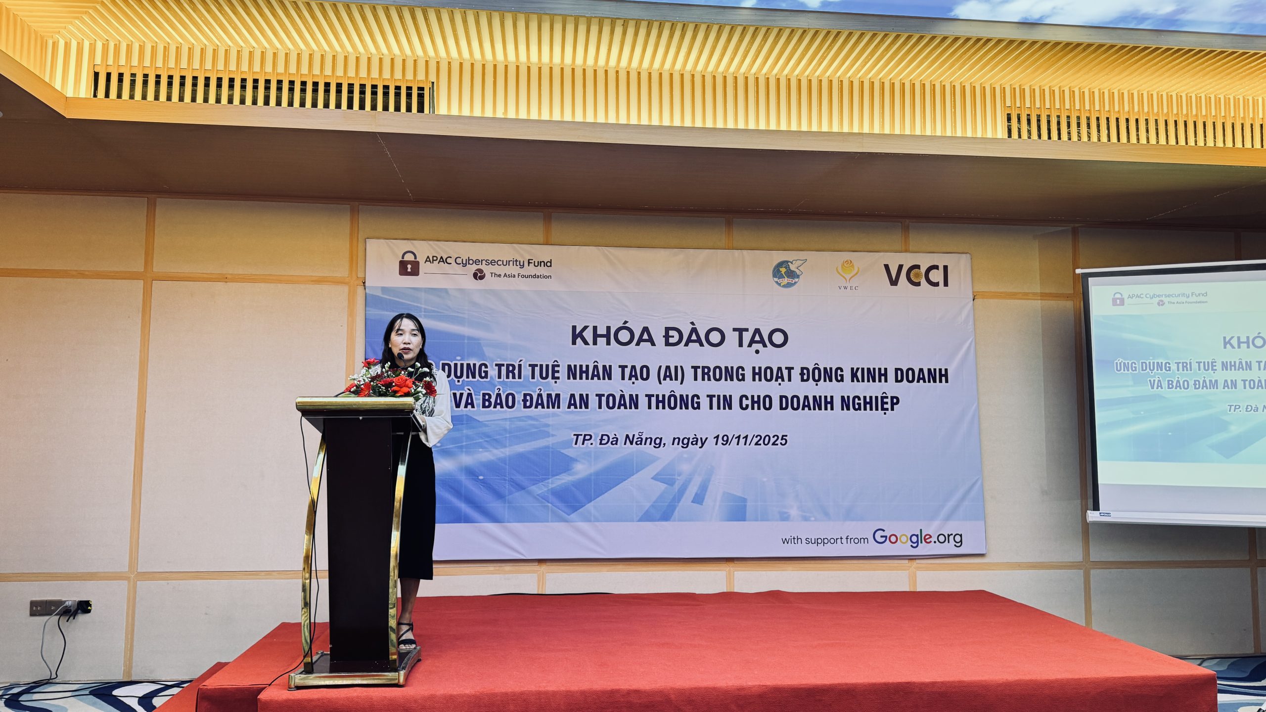 Ngày 19/11/2025, tại phường Hội An, TP. Đà Nẵng, Hội đồng Doanh nhân nữ Việt Nam (VWEC), VCCI phối hợp với Hội Liên hiệp phụ nữ phường Hội An tổ chức khóa đào tạo “Ứng dụng trí tuệ nhân tạo (AI) trong hoạt động kinh doanh và bảo đảm an toàn thông tin cho doanh nghiệp”.