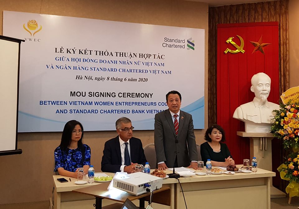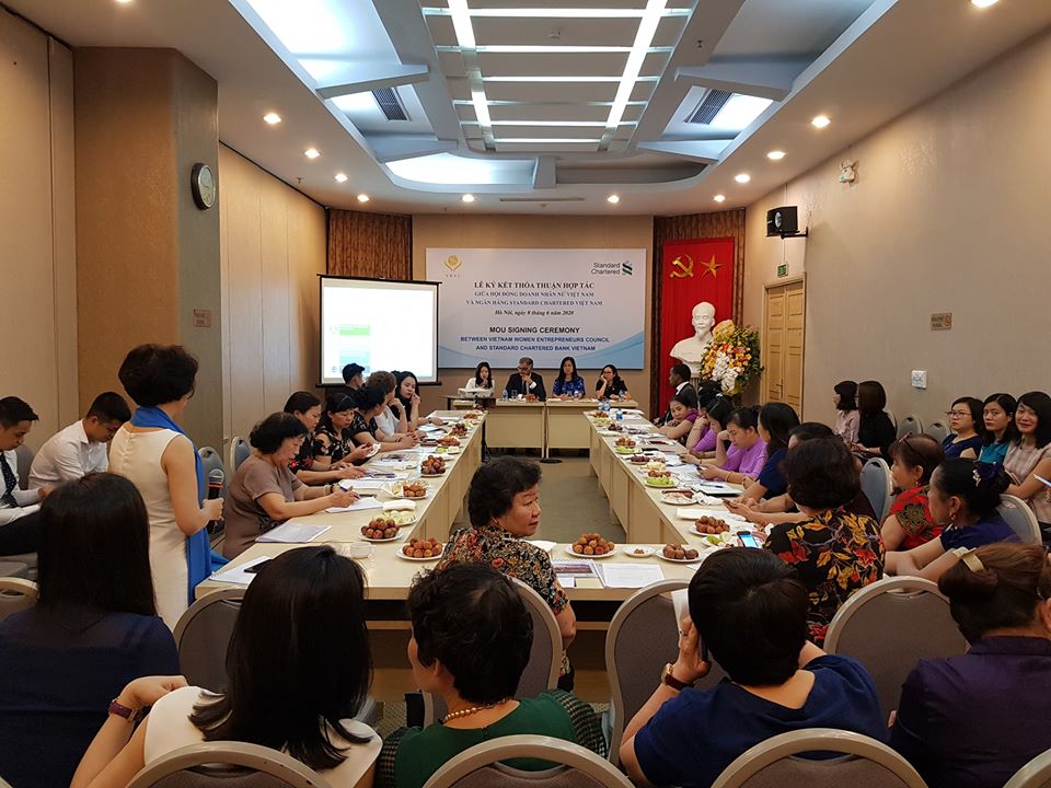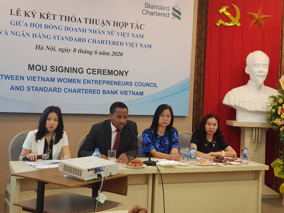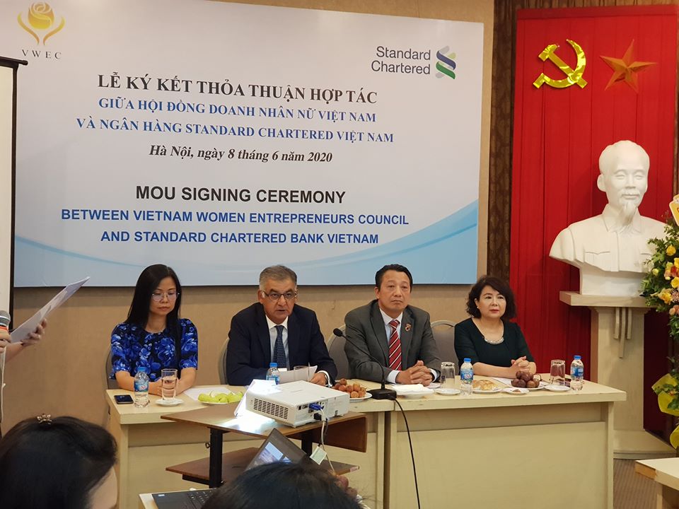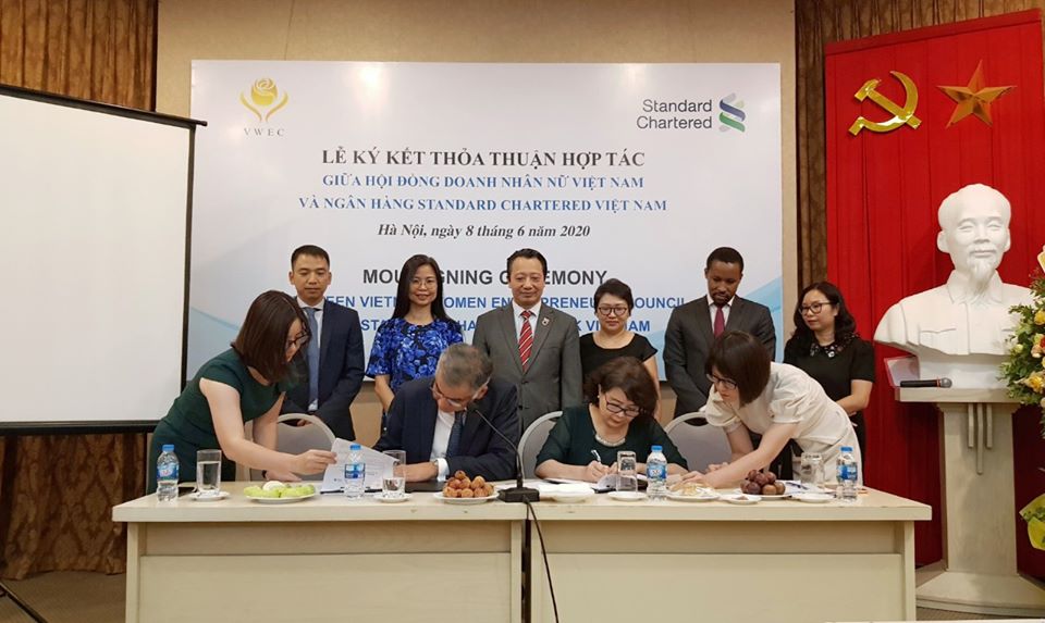 Ngày 8/6/2020 tại Hà Nội, Ngân hàng Standard Chartered VN và Hội đồng Doanh nhân nữ VN thuộc Phòng Thương mại và Công nghiệp VN đã ký kết Biên bản ghi nhớ về việc triển khai chương trình hỗ trợ tài chính cho các doanh nghiệp do phụ nữ làm chủ. Ông Nirukt Sapru – Tổng Giám đốc Standard Chartered Bank VN và bà Nguyễn Thị Tuyết Minh – Chủ tịch HĐ DNNVN đã ký Biên bản hợp tác với sự chứng kiến của các khách mời và đại diện cộng đồng DNN khu vực phía bắc. Hội đồng DNNVN hy vọng sự hợp tác của hai bên sẽ góp phần giúp các doanh nghiệp do nữ làm chủ tiếp cận tín dụng và các dịch vụ tài chính theo chuẩn quốc tế của SCB