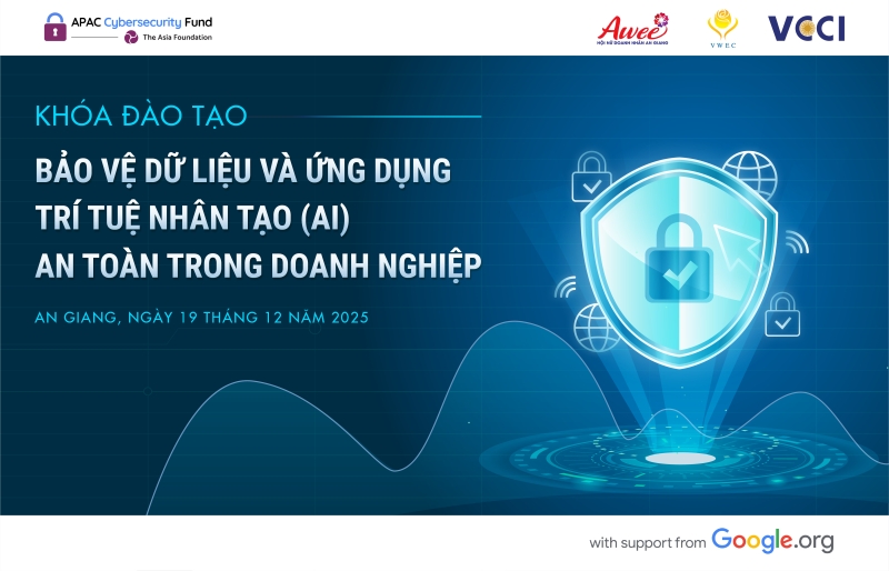 Trong khuôn khổ dự án “Hỗ trợ phát triển Doanh nghiệp do phụ nữ làm chủ tại Việt Nam” hợp tác giữa Hội đồng Doanh nhân nữ Việt Nam và Quỹ Châu Á tại Việt Nam, Hội đồng Doanh nhân nữ Việt Nam dự kiến phối hợp với Hội Nữ Doanh nhân tỉnh An Giang tổ chức Khóa đào tạo với chủ đề “Bảo vệ dữ liệu và ứng dụng trí tuệ nhân tạo (AI) an toàn trong doanh nghiệp”. Thông tin chi tiết như sau: